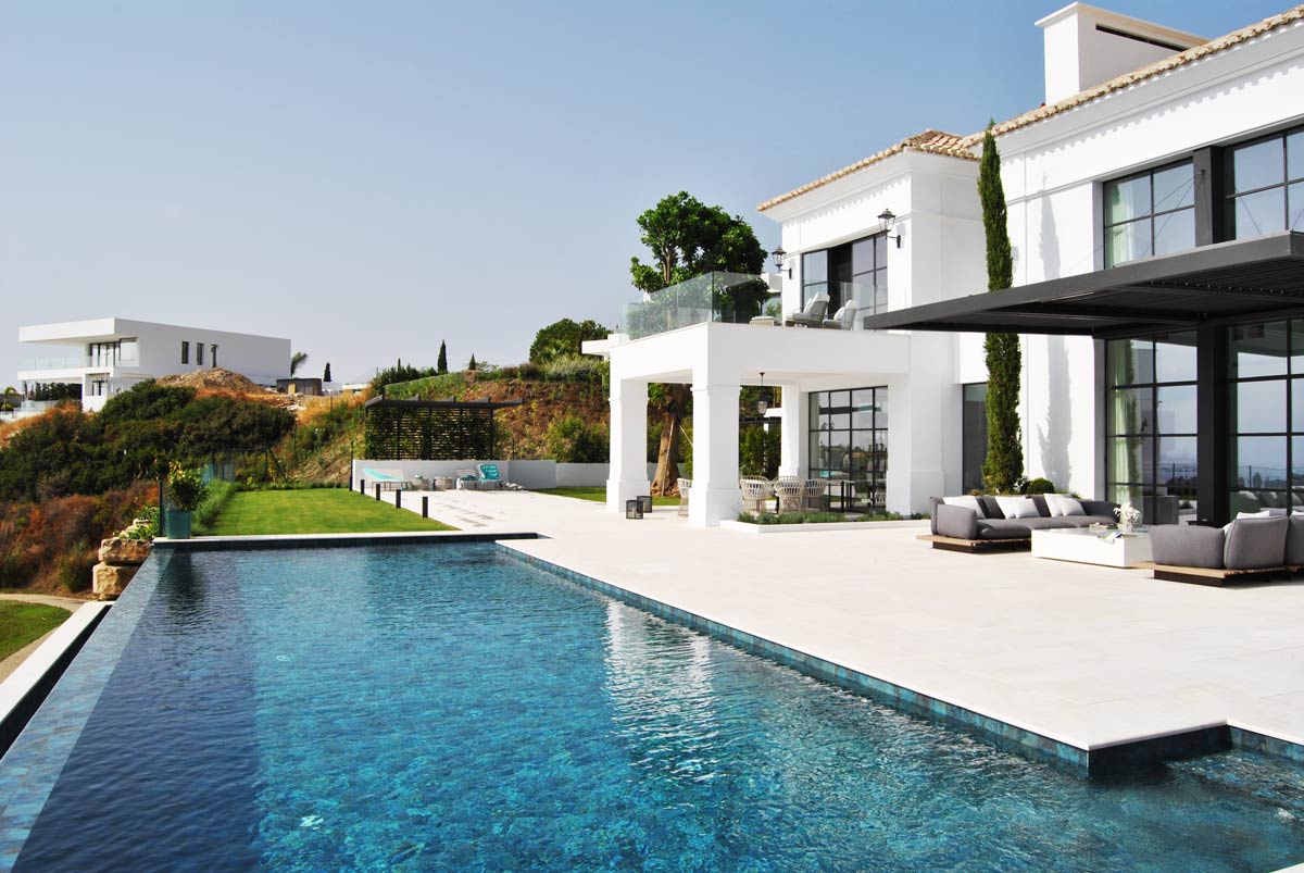 La terraza de Travertino Classico del Villa Padierna Palace es espectacular. Al más puro estilo neoclásico, este espacio de lujo se integra en perfecta armonía con el paisaje mediterráneo.